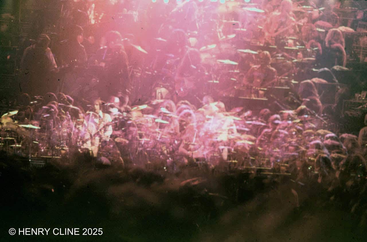 I recently discovered what I hope will be the last batch of photo images that had not been scanned into my archive (currently standing at over 100K) When I found this last batch I was excited about a photo I had taken in Florence, Italy of a piece of pizza (and posted about here), then I noticed another more quixotic image I had shot at a Grateful Dead concert in the 1980’s. (It’s astounding to note that back then you could walk into a concert with a 35mm camera strapped around your neck and no one said boo!) I went in with a full roll of film loaded, but what on that particular night my camera jammed, or I jammed, some sort of jamming took place and the entire roll was multi-exposed onto one frame.