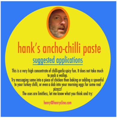 I could go on and on, but I wont. The only other item that deserves a small space here is Hank’s Ancho-Chilli Paste. I invented it awhile back while refining a recipe for the worlds best turkey chili and realized I had stumbled on a marketable, nothing like it in the world, culinary treat. This is the one item that I truly believe could sell and be profitable. If anyone out there wants to run with it, let me know. The only two people in the world that have the recipe are Tim Hennessy and John Lindley, so if it gets out, I know exactly where to look.