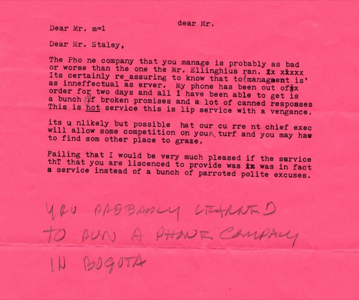 There also appears to be a genetic element to my letter writing. My dad was a fierce letter writer. My favorite was a letter to then Mayor of NYC, John Lindsey after one of the cities men in blue decided to harass me and a few of my friends while on our way home from school one day. I don’t think my dad ever heard back from the Mayor. The only letter of my father’s I can find is this draft he was writing that pretty much tells it all.