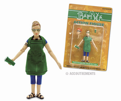 So, there I am in NYC on my lunch break in the wall street area. There were two Starbucks within eye shot of where we were shooting. At lunch a dived into a barber shop, got a trim and then on the way back to the set I stopped into one of the Starbckses and ordered my favored beverage. The barista was no more than four feet from both me and the cashier when I ordered. I said my words and the cashier said the words to the barista. The barista said nothing. He was a greasy haired, tattooed youngin’ all full of guff, steaming away his hours, if they made a male version of the barista action figure I found, it would look like him. After about five seconds and without looking up all he says is: “there is no such thing, what he wants is a grande dry cappuccino”. The cashier turned her head back to me and waited for my response. I didn’t know what to do, I was perplexed. I said to her, “You know, what I really want is what I ordered, a small latte with not too much milk in it”. She immediately saw that some sort of a fracas was brewing between me and the gangly stud ridden barista monkey. She paused for a moment and then leaned in a little and said, “Have you ever tried a “wet doppio macchiato?”. She said it in such a nice way I had to be truthful, I had not. So I did, and what did I find out, hold on to your hats folks, I found out that a wet doppio macchiato is pretty much all I ever wanted from Starbucks, that is was a pretty darn respectable jolt of joe, that it is fairly hard to screw up in the push button cappuccino age and that it cost a friggin’ $2.19!!!