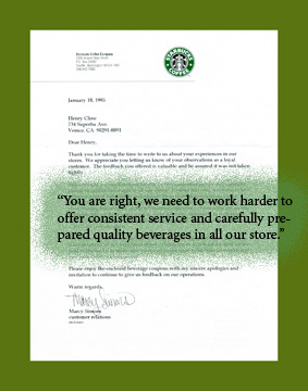 The letter I got back confirmed it. They were admitting that they made bad coffee. Explaining that expansion is very difficult and quality control something they should be paying more attention to. On this note, I was off on a new campaign, Starbucks now SUX! they also sent me a handful of free coffee passes which I gladly stuffed into my wallet for emergency situations.