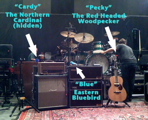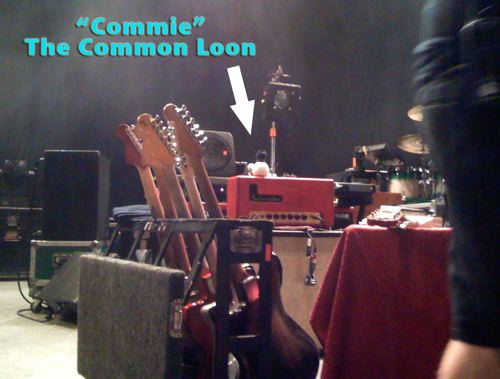 It could not have been more than a minute that I had this unbelievable out of body experience. I looked up at one point and what I saw was “Commie” (The Common Loon) sitting atop a Marshall stack center stage. I blinked, rubbed my eyes and looked up to see “Cardy”, (The Northern Cardinal) sitting all alone on another amplifier. Then “Blue”, then “Pecky”, all of the sudden I had the distinct feeling that Wilco was playing this concert in my son Jack’s bedroom. I was in a state of complete disbelief. I mean my favorite the band in the world had “The Guys” on stage, and not one or two, but four of them distinctly and securely place around the stage.