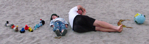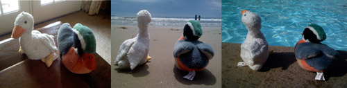 Now, what in the world could any of this have to do with my favorite music band that is currently bringing some of the freshest and most intriguing music to our collective ears, Wilco? Well, I will tell you what the connection is. Last weekend my girlfriend and I went to Santa Barbara for the weekend, culminating Sunday night with seeing Wilco live at the Santa Barbara Bowl. At the last minute I had decided to bring two of the guys (actually one of them is an official “Guy”, the other is a very respectable Tyco plush toy bird named “Walky Talky Hawky“). During the weekend I decided to take pictures of the guys in different places and them send those pictures via email back to my son as a way to stay connected to him. I had the guys at the Hotel, by the pool and at the seashore.