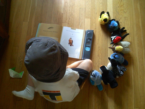The other night I had an unbelievable experience concerning some stuffed animals I have gotten close to over the last few months. You see, my son Jack and I have an ongoing relationship with whichever group of characters currently pops up into our lives. This group of friends, playmates, confidantes, groupies are always referred to as “The Guys” no matter what the current iteration happens to be. And have been many changes of the guard over the last few years ranging from Looney Tune Pez dispensers to the current and formidable collection of exquisitely adorable and lifelike “Audubon Birds With Real bird Calls!“