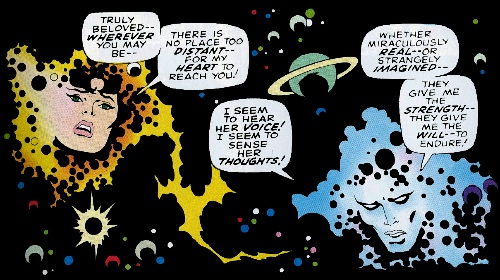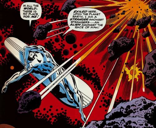 It is one heck of a lonely life the Surfer is committed to, spending most of his time (eternity is very long) floating around in his bubble of space, a purgatory, waxing hilariously on the foibles of humankind and how useless it all is. Oh, and much endless anecdotes of love for Shalla-Bal.